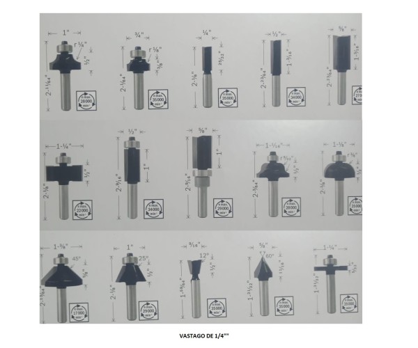 - Para fresadoras con portaherramientas de 1/4 pulgadas de todas las marcas de herramientas eléctricas.