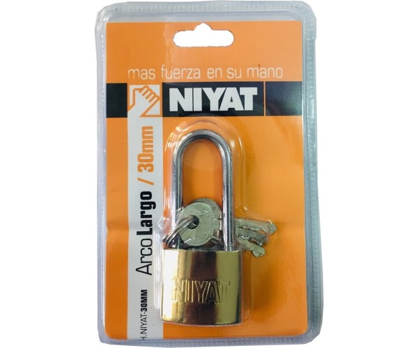 CANDADO HIERRO COLOR BRONCE ARCO LARGO 30MM - 3 LLAVES NIYAT