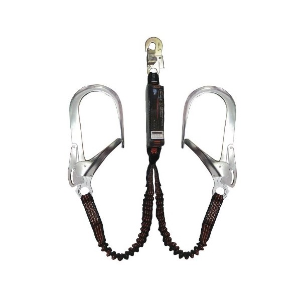 Cabo de vida doble en cinta elastizada, con amortiguador de caidas, (1 mosqueton de 25 mm y 2 mosquetones de 110
