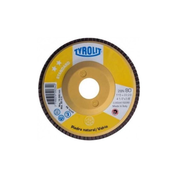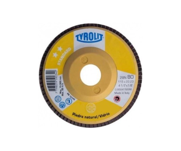 La composición del Disco Flap TYROLIT STANDARD Carburo de Silicio y su dureza le permiten trabajar con alto rendimiento materiales como piedras naturales, vidrios, materiales no ferrosos, plástico, madera, la eliminación de óxido, barniz, pintura, etc. Para trabajar en amoladoras angulares en el rectificado de superficies y bordes, y trabajos de rebarbados.