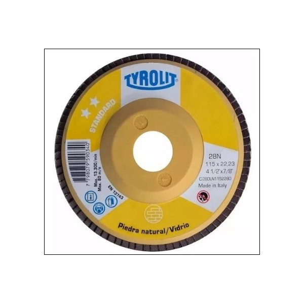 DISCO FLAP ZIRCONIO - CONVEXO - FIBRA 115 X 22 X GR80 TYROLIT