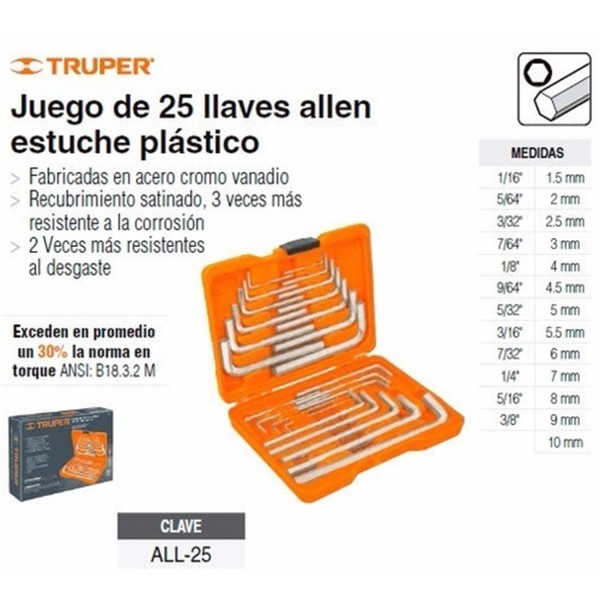 JUEGO LLAVE ALLEM - ALL-25 - 15572 - 25 PZAS - TRUPER