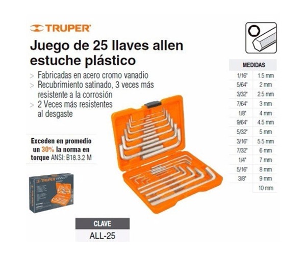 Juego Llave Allem - All-25 - 15572 - 25 Pzas - Truper