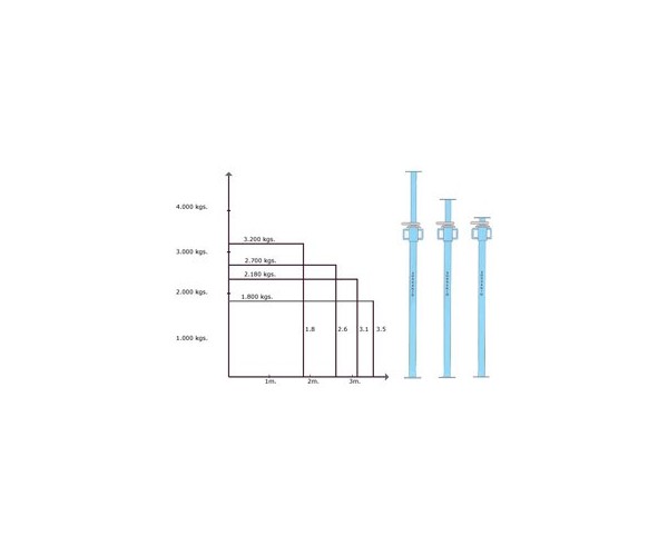 Los datos son de carga a la rotura para puntales nuevos, aplomados y con carga vertical centrada.