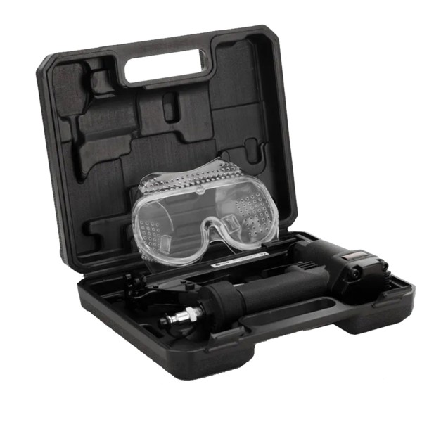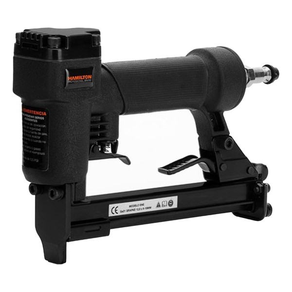 - Corona: 12,7 6/16 mm. - Presion de trabajo: 60-100 psi - Presion maxima: 120 psi La engrampadora neumatica es ideal para unir molduras, partes de muebles, sujeciones temporales. Tiene un cuerpo de fundicion a presion de aluminio resistente y liviano, con una junta de teflòn que protege el piston contra el desgaste.