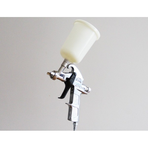 Cuerpo de aluminio ergonomicamente diseñado que brinda mayor robustez. Es un modelo versátil con sistema de alimentación por gravedad, especial para decoradores, letristas, dibujantes, jugueteros y para la industria del calzado, que mediante el intercambio de boquilla, pico y taza ( piezas incluidas como equipamiento standard ) se convierte en ideal para industrias cerámicas.